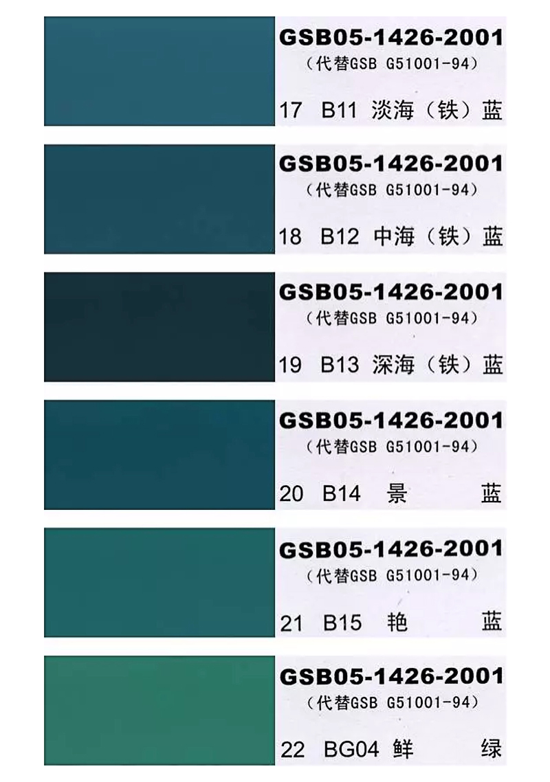 環(huán)氧地坪漆國標(biāo)色卡GSB